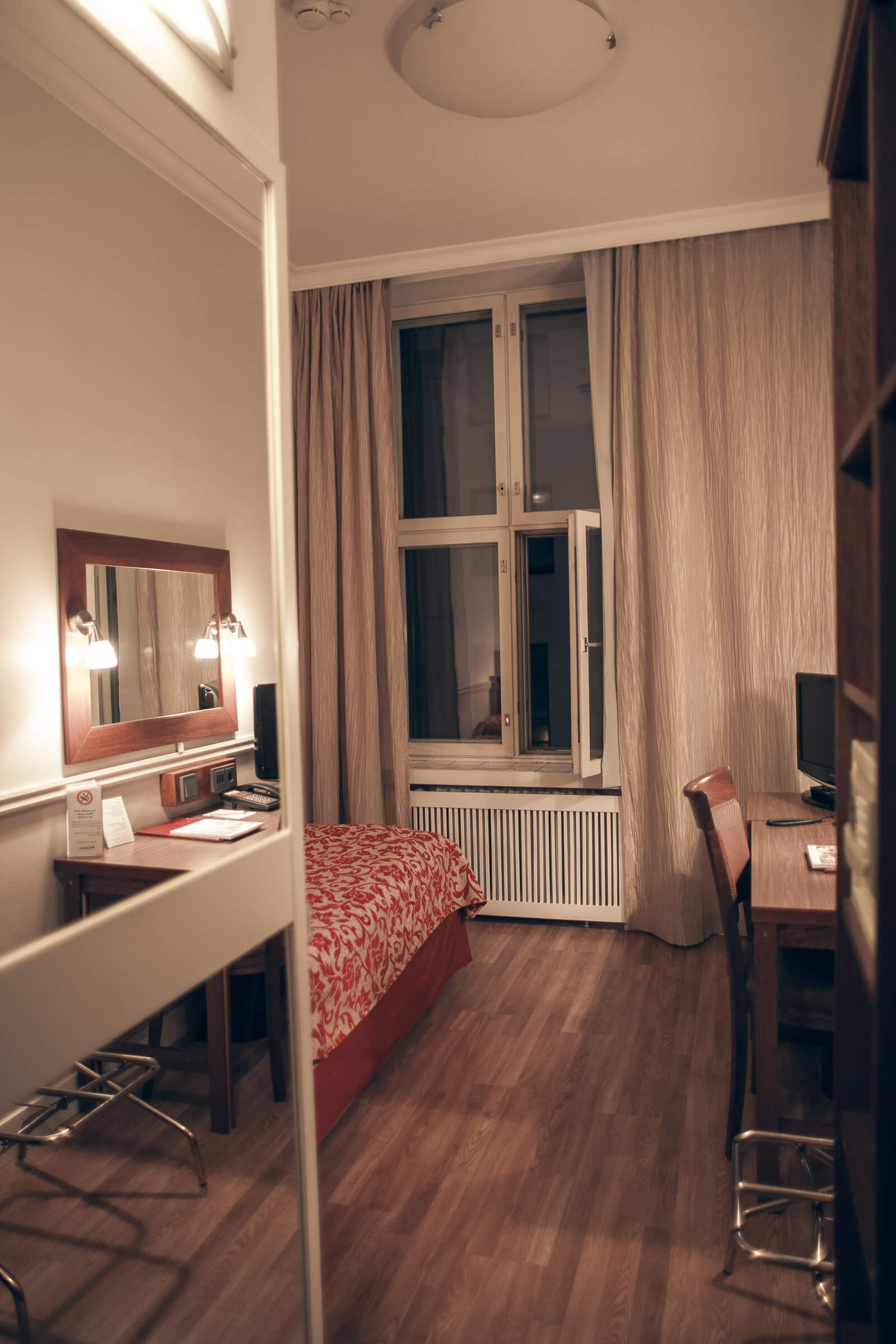 Single room for one person, appr. 9 sqm. The room is fully equipped with private bath room with shower, WC, hairdryer, umbrella, shoe spoon, telephone, TV, safe box, minibar, working desk and free WiFi. Max. occupancy 1 person.